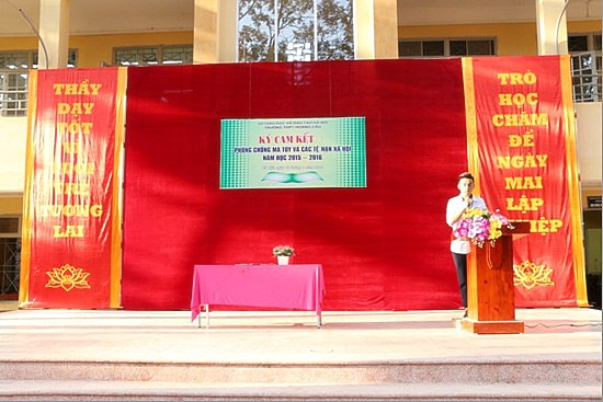 Đại diện các tập thể lớp ký cam kết thực hiện phòng chống ma túy và các tệ nạn xã hội năm học 2015 - 2016
