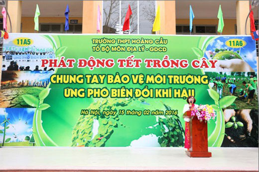 Trước tình trạng môi trường đang bị ô nhiễm, nhiều hiện tượng thời tiết bất thường diễn ra: Trái đất nóng lên, băng tan, nước biển dâng, lũ lụt hạn hán xẩy ra...đó chính là những biểu hiện của hiện tượng biến đổi khí hậu. Ngày 15/2/2016 thầy và trò trường THPT Hoàng Cầu long trọng tổ chức chương trình “phát động tết trồng cây chung tay bảo vệ môi trường ứng phó biến đổi khí hậu”.
