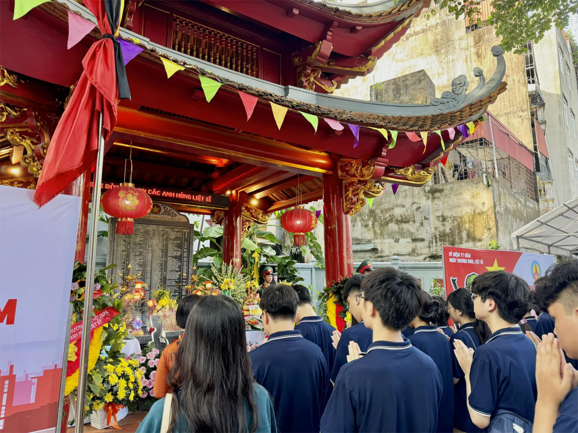 Đại diện cho đoàn dâng hương của nhà trường có cô giáo Nguyễn Thị Lan Phương- Phó bí thư, phó hiệu trưởng; cô giáo Vũ Hải Yến và cô giáo Bùi Thị Như Quỳnh- Đoàn thanh niên; 45 học sinh ưu tú đại diện cho hơn 1500 học sinh toàn trường.