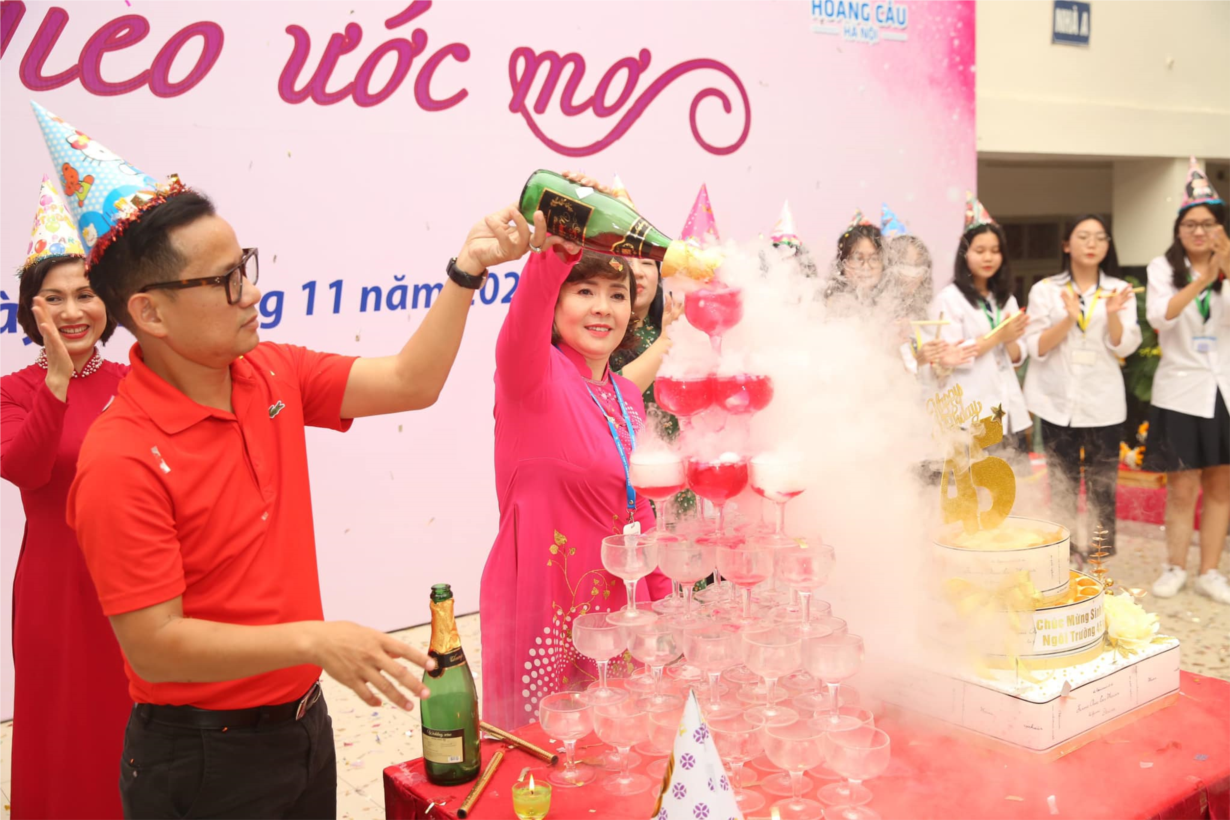 Chương trình được mở đầu bằng phần mừng sinh nhật trường đầy ấn tượng trên sân khấu với sự tham gia của BGH, đại diện Ban CMHS nhà trường và đại diện 33 tập thể lớp. 45 ngọn nến sáng đã được thắp lên bởi 45 đại diện - tượng trưng cho năm tháng trường tồn của ngôi trường và khát vọng vào tương lai tốt đẹp.