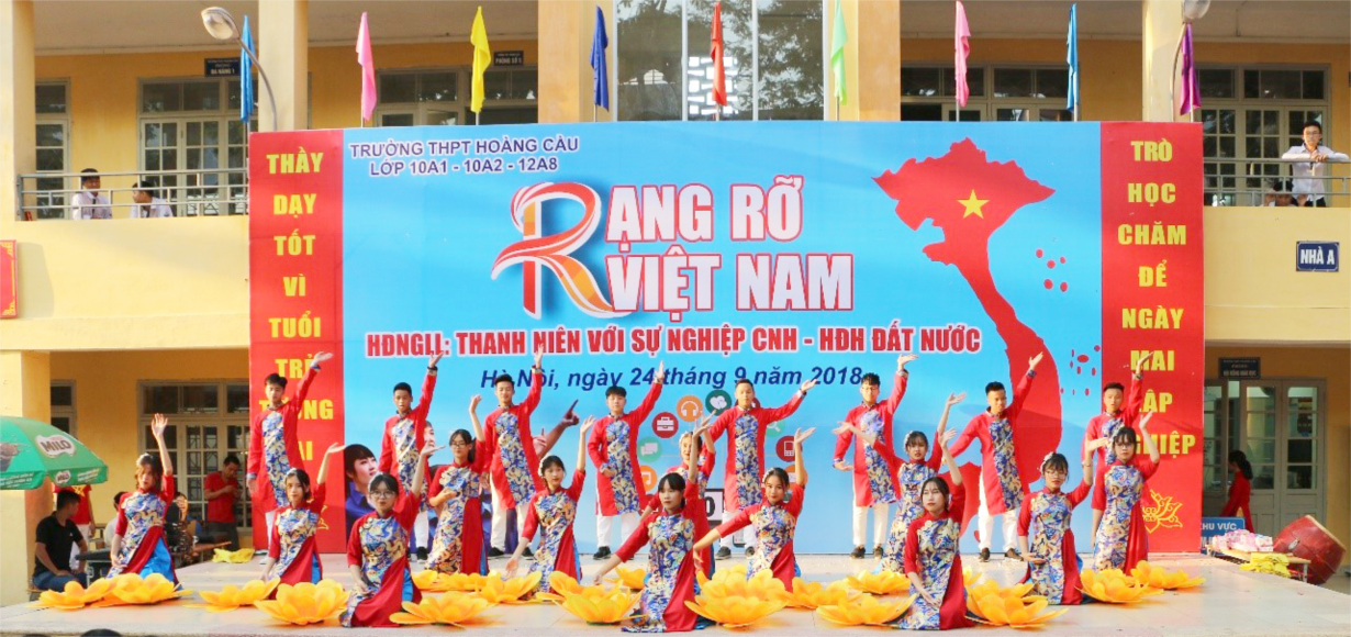 Thực hiện kế hoạch năm học 2018 - 2019 và được sự quan tâm chỉ đạo, giúp đỡ của Ban Giám hiệu, ngày 01/10/2018, ba tập thể lớp 10A1, 10A2 và 12A8 đã thực hiện chương trình HĐGD NGLL Chủ đề tháng 9 "Thanh niên với sự nghiệp công nghiệp hóa, hiện đại hóa đất nước” với tên gọi: Rạng rỡ Việt Nam.