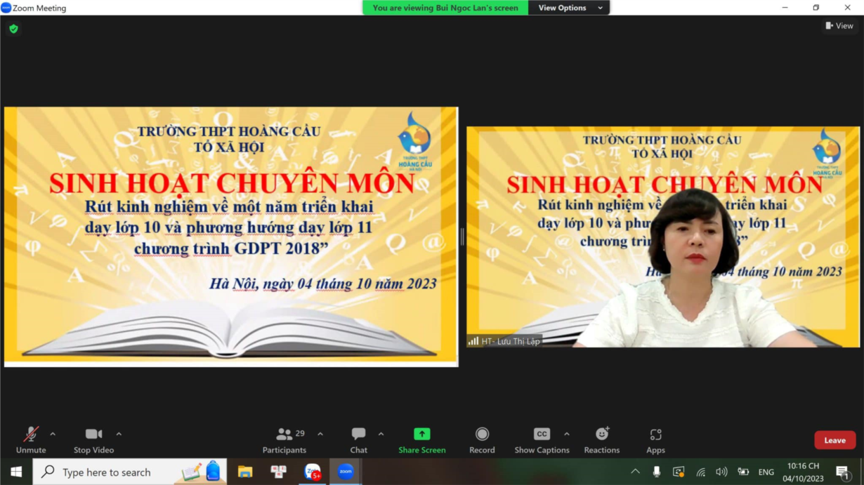 Tuy thực hiện thông qua hình thức trực tuyến nhưng buổi sinh hoạt đã diễn ra đầy sôi nổi khi đây là dịp để mỗi thầy cô giáo được chia sẻ về kinh nghiệm cũng như những khó khăn khi triển khai chương trình mới.