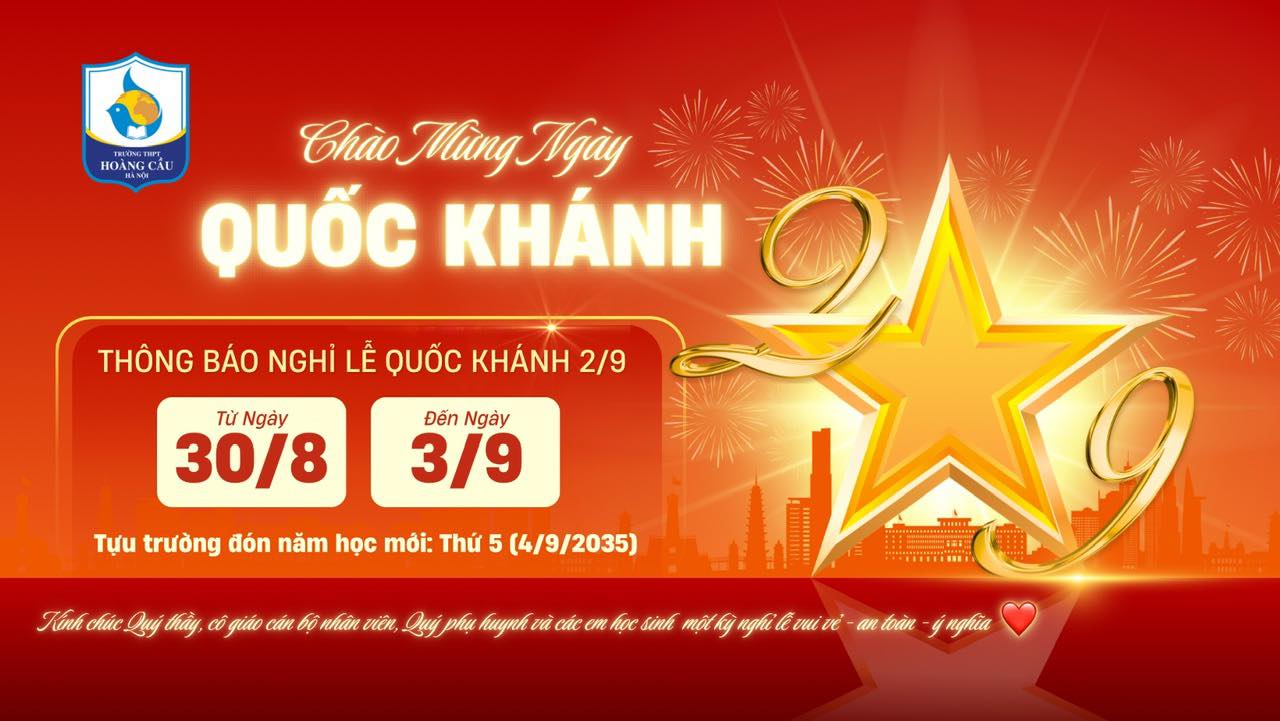 BGH trường THPT Hoàng Cầu xin gửi đến quý phụ huynh, thầy cô và các em học sinh lịch nghỉ lễ Quốc khánh như sau: