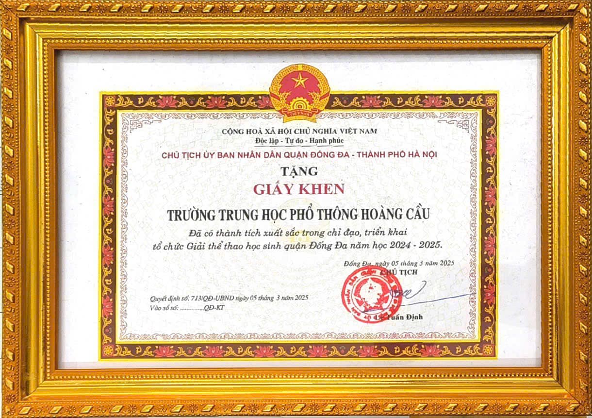 Trong không khí sôi nổi thi đua lập thành tích chào mừng các ngày lễ lớn của dân tộc và hướng tới kết thúc năm học 2024–2025, thầy và trò trường THPT Hoàng Cầu đã liên tiếp gặt hái nhiều thành tích đáng tự hào, được các cấp, ngành ghi nhận và biểu dương bằng những danh hiệu, giấy khen cao quý.
