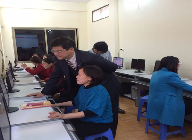 Phó Giám đốc Sở GD và ĐT Hà Nội Phạm Xuân Tiến kiểm tra việc thực hiện “Trường học kết nối ” của nhà trường