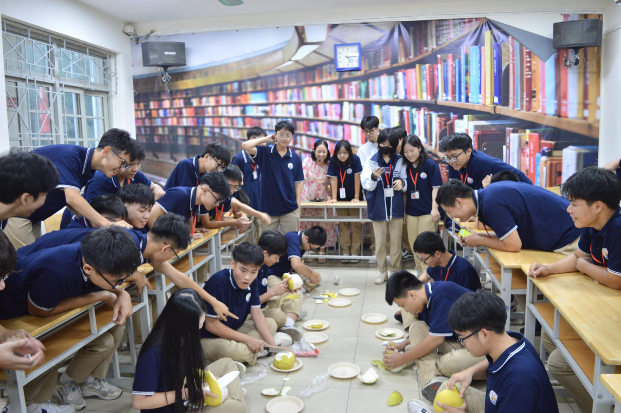 Không chỉ dừng lại ở việc bày cỗ, học sinh còn được tham gia nhiều hoạt động tập thể: trò chơi dân gian, biểu diễn văn nghệ, tiết mục trò chơi sôi động… Những tràng pháo tay, tiếng reo hò đã làm bừng sáng không khí đoàn kết, gợi nhắc về tuổi thơ hồn nhiên, trong sáng.